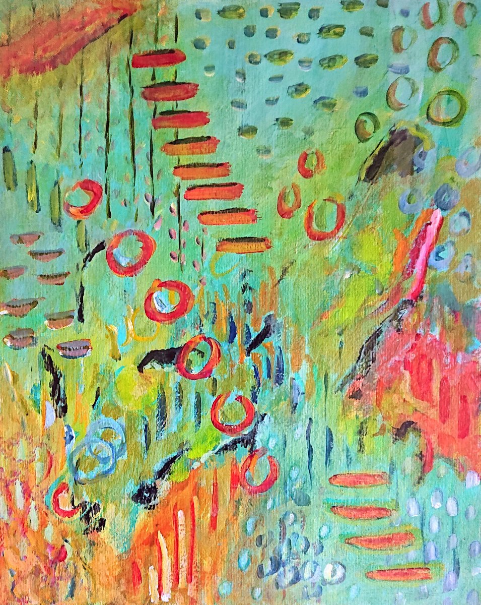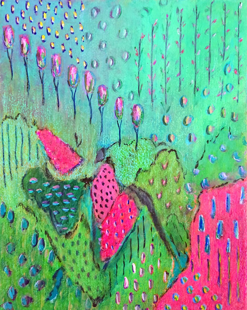 AP6. Grønne farver. Akryl på papir. 60x50 cm |  AP 9. Pink-grøn. Akryl på papir. 60x50 cm. | |