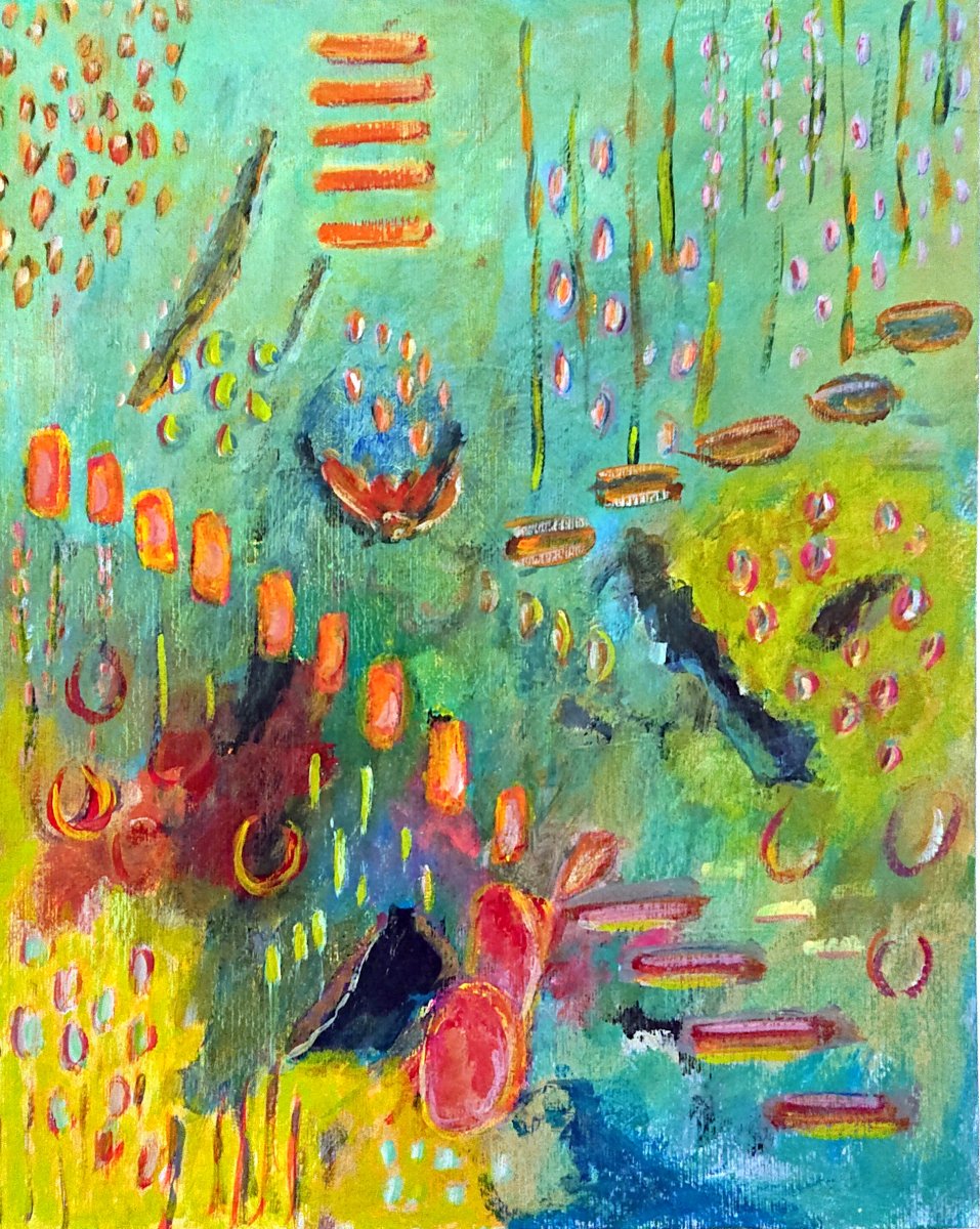 AP10. Grøn-gul 1. Akryl på papir. 60x50 cm. Solgt |  AP 11. Grøn gul 2. Akryl på papir. 60x50 cm. |  AP12. Grøn-blå-orange. Akryl på papir. 60x50 |