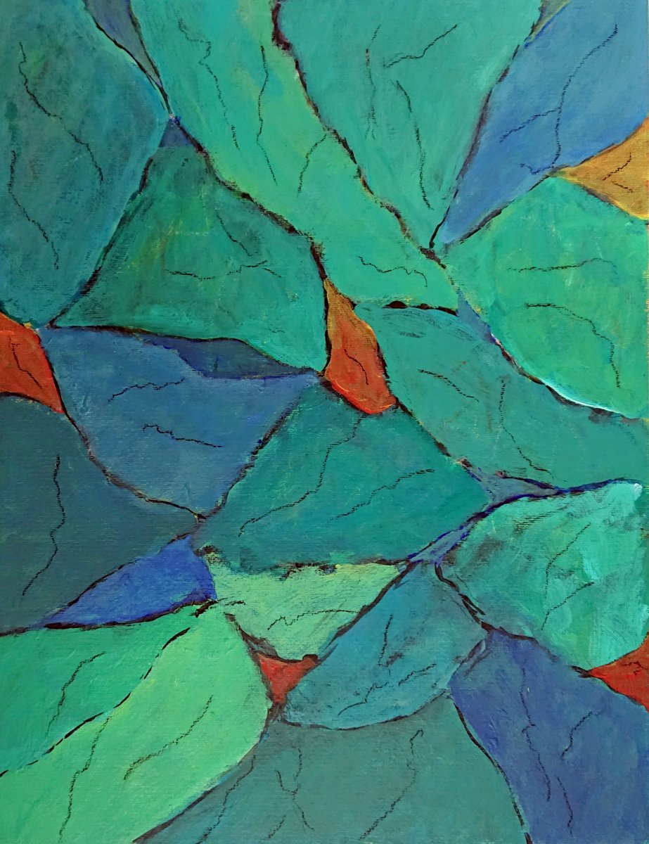 AO 187 - Blå krukke - Akryl på lærred - 70x60 cm. Solgt. |  AO 206 - Stængler med blade - Akryl på lærred - 70x60 cm. Solgt. |  AO 102 - Blomster fra haven - Akryl på lærred - 65x45 cm. Solgt. |